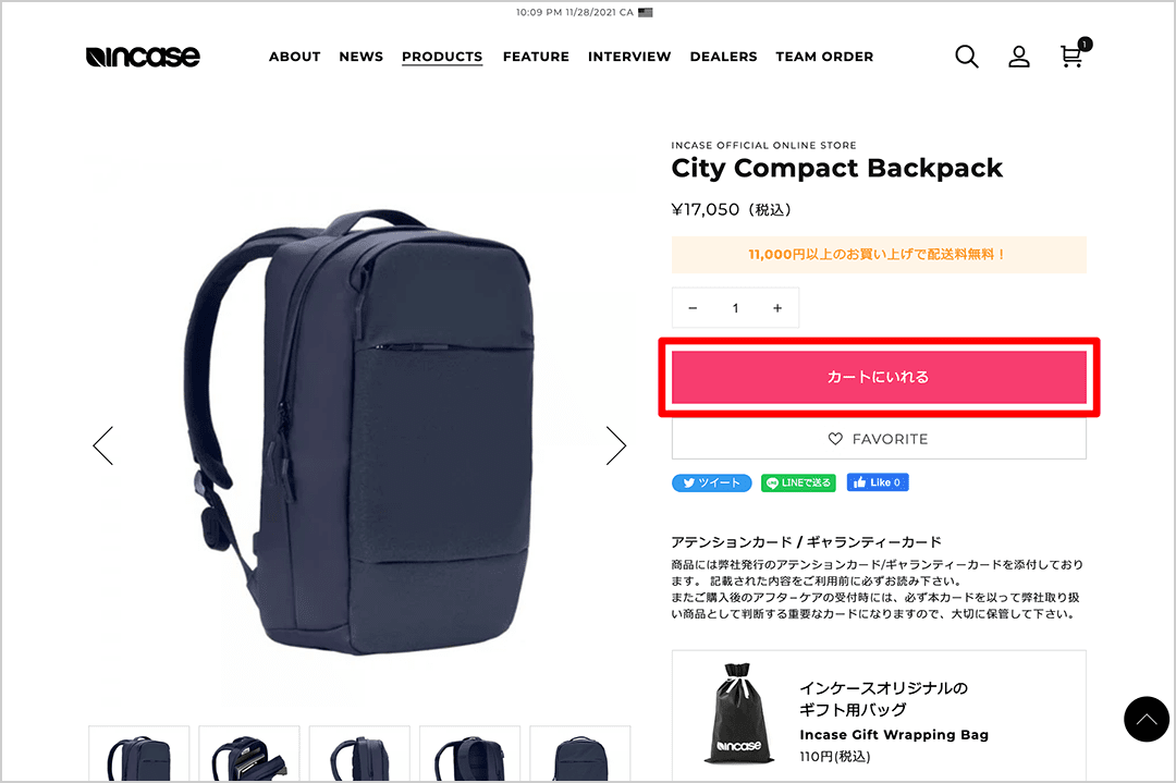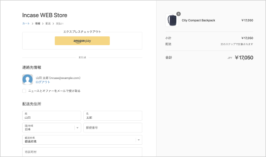 ご登録のメールアドレスに「sprt_incase@bs-intl.com」から『【incase】ご注文確認メール(自動配信)』が届きます。数分経過してもメールが届かない場合は、お手数ですが、こちらよりご連絡ください。