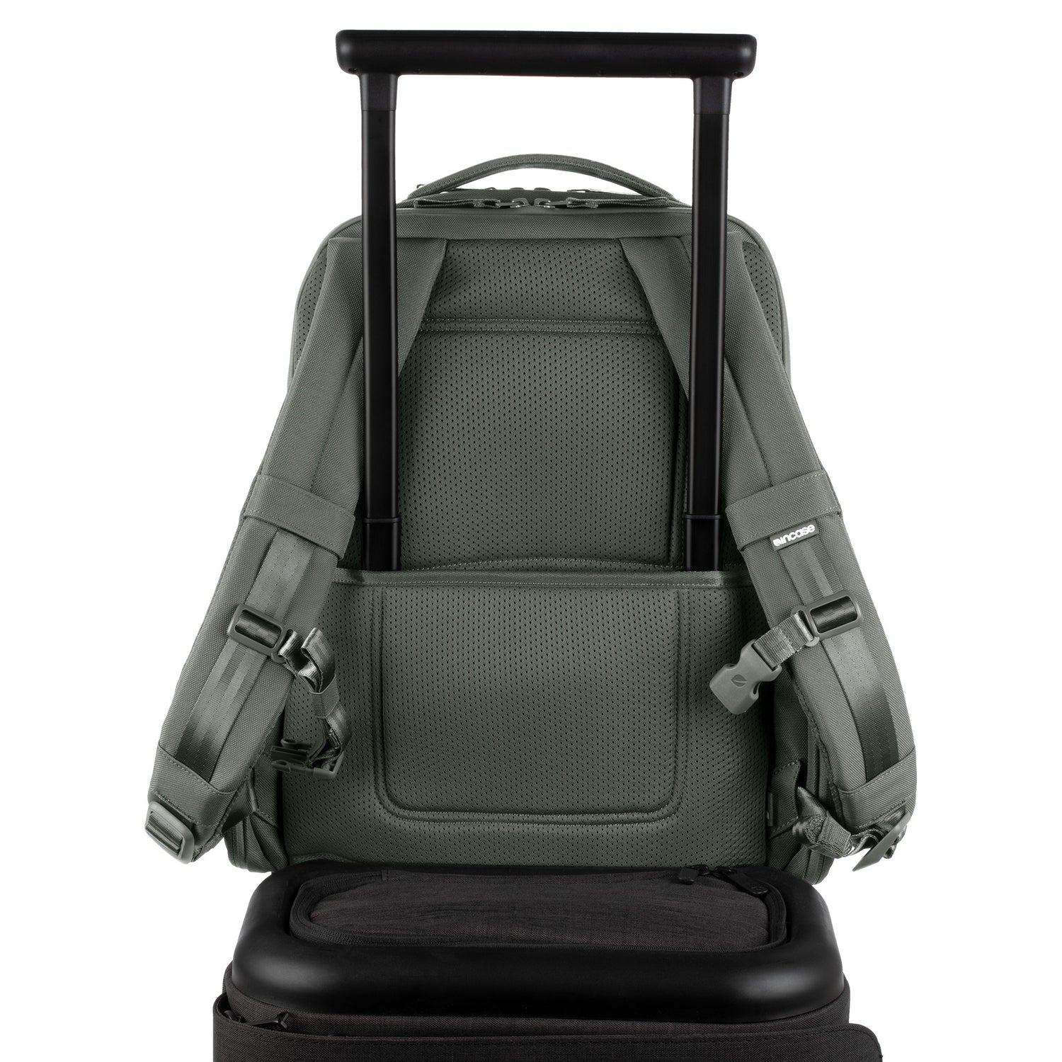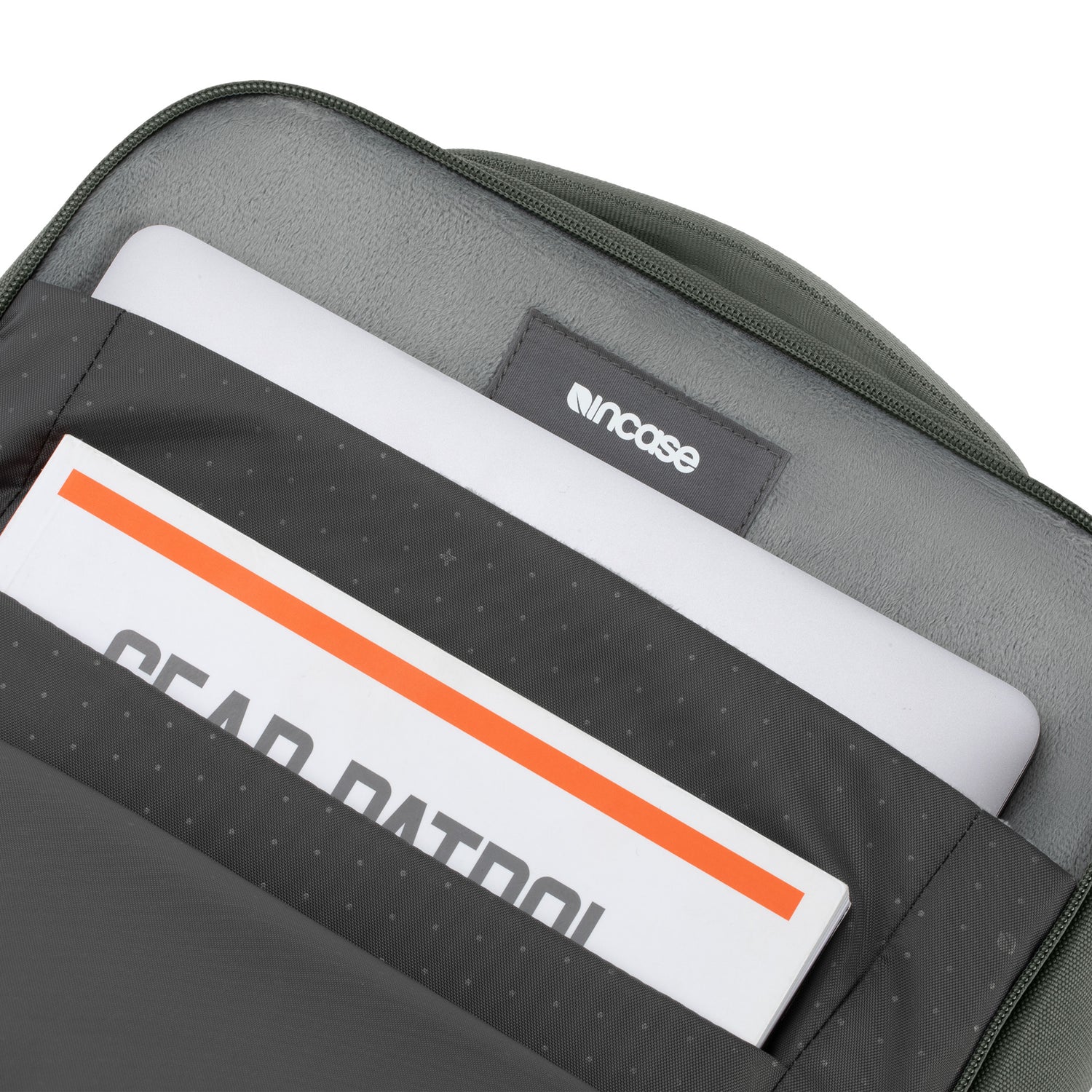 ・独立したテックコンパートメントには、ラップトップとタブレットそれぞれの収納に適したポケットを完備。 また、入口には防水性の高い止水ジップ