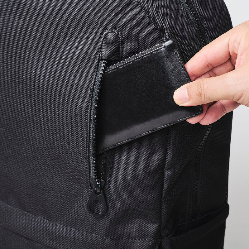 フロントパネル上部には、アクセスしやすい縦型のジップポケット
