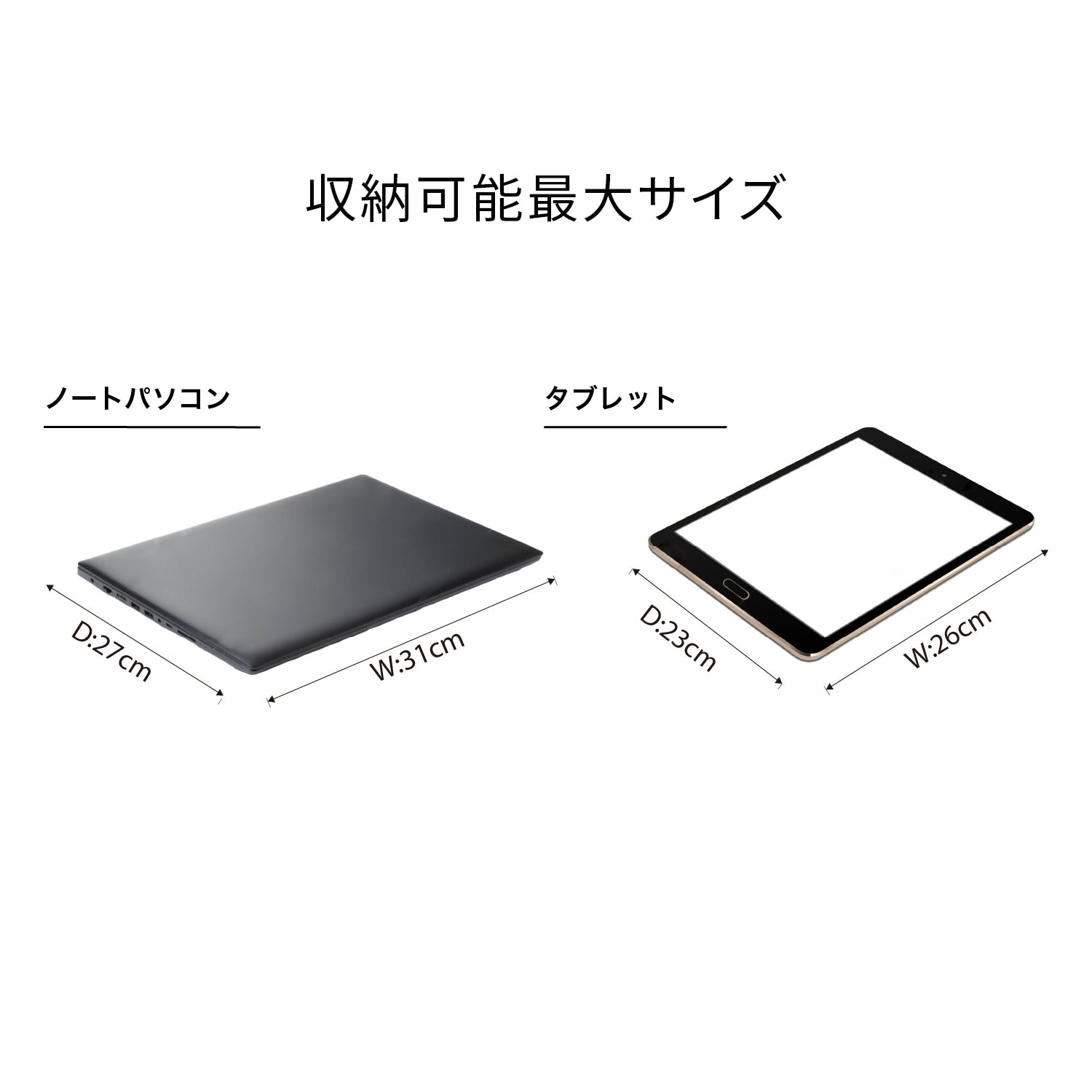 ・フロントパネルには、タブレット端末や小物などの収納に適したフラップ付きオーガナイザージップポケット